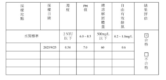 唐埕提供每次清洗完畢後的水質檢驗報告,讓社區住戶安心有保障。